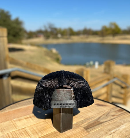 Green and Black Richardson 112 hate with our new Our Whiskey Our Way Barrel Design! Showing love for the use of barrels in making all things TX Whiskey!