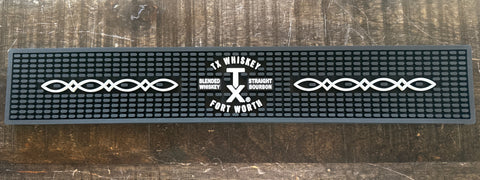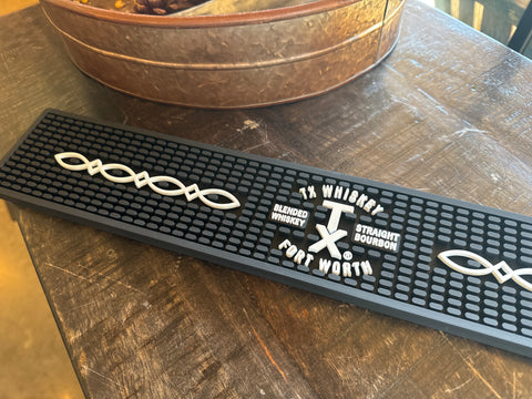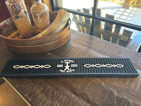 Protect your bar in style with the TX Whiskey & TX Bourbon Rail Mat. This durable mat keeps your countertop safe from spills and condensation while displaying your brand pride. Perfect for home bars, man caves, or commercial setups, it's the practical accessory every whiskey lover needs. Easy to clean and built to last, it's the finishing touch that says you take your spirits seriously—even if you don't take yourself too seriously.
