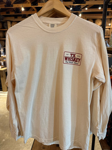 Embrace the casual charm of Texas with our TX Whiskey Stacked Badge Long Sleeve shirt in ivory. Crafted for those who appreciate both comfort and style, this tee is perfect for cooler days when you want to layer up without sacrificing your laid-back look. Perfect for relaxing weekends, casual outings, or simply showcasing your love of TX Whiskey!